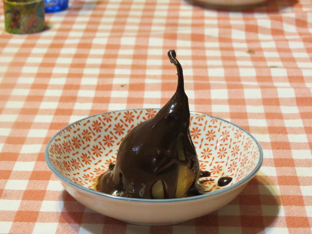 Vous l'aurez compris, je vous propose de cuisiner la poire. Les poires pochées au sirop sont : bonnes, simples, efficaces, et, agrémentées de sauce au chocolat, c'est "Rhaaaaaaa ! Trop booooon !!!" d'après mes Saperlipupuces... Euh, je vous avoue que ça me fait le même effet ;-)